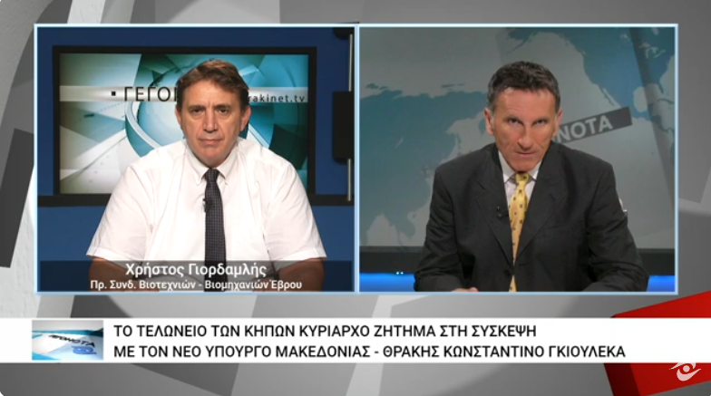 Στο κεντρικό δελτίο ειδήσεων του τηλεοπτικού σταθμού ΘΡΑΚΗΝΕΤ και στον δημοσιογράφο Σταύρο Παπαδόπουλο φιλοξενήθηκε ο Πρόεδρος του Συνδέσμου Βιοτεχνιών - Βιομηχανιών και Εξαγωγικών Επιχειρήσεων Έβρου Χρήστος Γιορδαμλής, ο οποίος αναφέρθηκε στην επιβεβλημένη αναβάθμιση του τελωνείου των Κήπων προκειμένου να εξυπηρετήσει τις ορδές τουριστών που επισκέπτονται το τελευταίο διάστημα την ευρύτερη περιοχή. Ο κ. Γιορδαμλής τόνισε πως υπήρξε δέσμευση από τον Υφυπουργό Μακεδονίας - Θράκης ότι οι εργασίες αναβάθμισης του τελωνείου των Κήπων θα έχουν ολοκληρωθεί έως το Πάσχα του 2025.